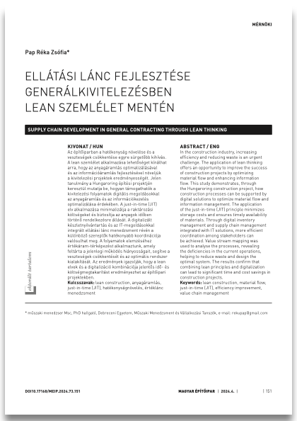 ELLÁTÁSI LÁNC FEJLESZTÉSE GENERÁLKIVITELEZÉSBEN LEAN SZEMLÉLET MENTÉN