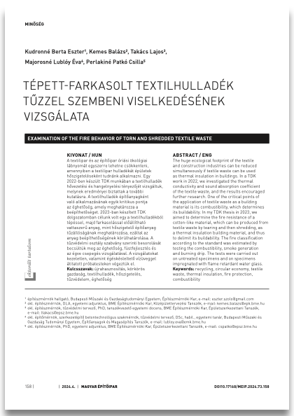 TÉPETT-FARKASOLT TEXTILHULLADÉK TŰZZEL SZEMBENI VISELKEDÉSÉNEK VIZSGÁLATA