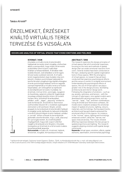 ÉRZELMEKET, ÉRZÉSEKET KIVÁLTÓ VIRTUÁLIS TEREK TERVEZÉSE ÉS VIZSGÁLATA