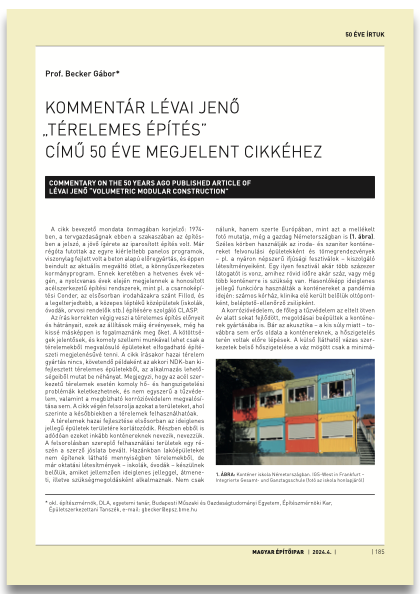 KOMMENTÁR LÉVAI JENŐ „TÉRELEMES ÉPÍTÉS” CÍMŰ 50 ÉVE MEGJELENT CIKKÉHEZ